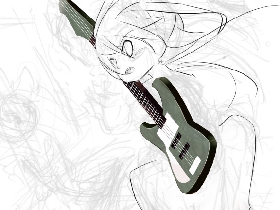 原稿作業より時間かけてるような気がする澪さんイラスト スカートのヒダヒダが難しすぎて今だ放っといている現状。なんというかギターにあわせて塗りも変えたらギャルゲー塗りになってきました。違和感ありあり