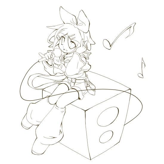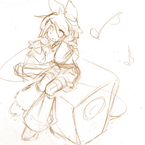 まぁもう一枚のラフは鏡音リンを描いてるつもりっす。3頭身より大きくしようとしたけど今の俺には難しい絵だわさ