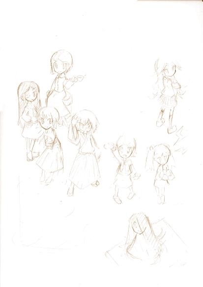 影響されてディスガイアっぽく絶望を描こうと思い、下書きやってるわけですが・・・8人くらいじゃ画面うまんないっす・・(ディスガイア3の表紙は軽く2、30人いたし